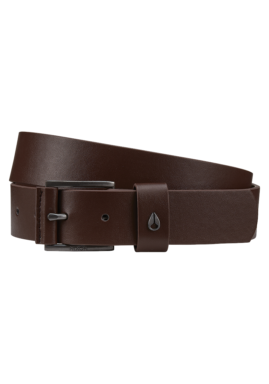 A vegan leather strap with a custom single post steel buckle. Rivets are re-enforced for durability and the keeper sports embossed branding.