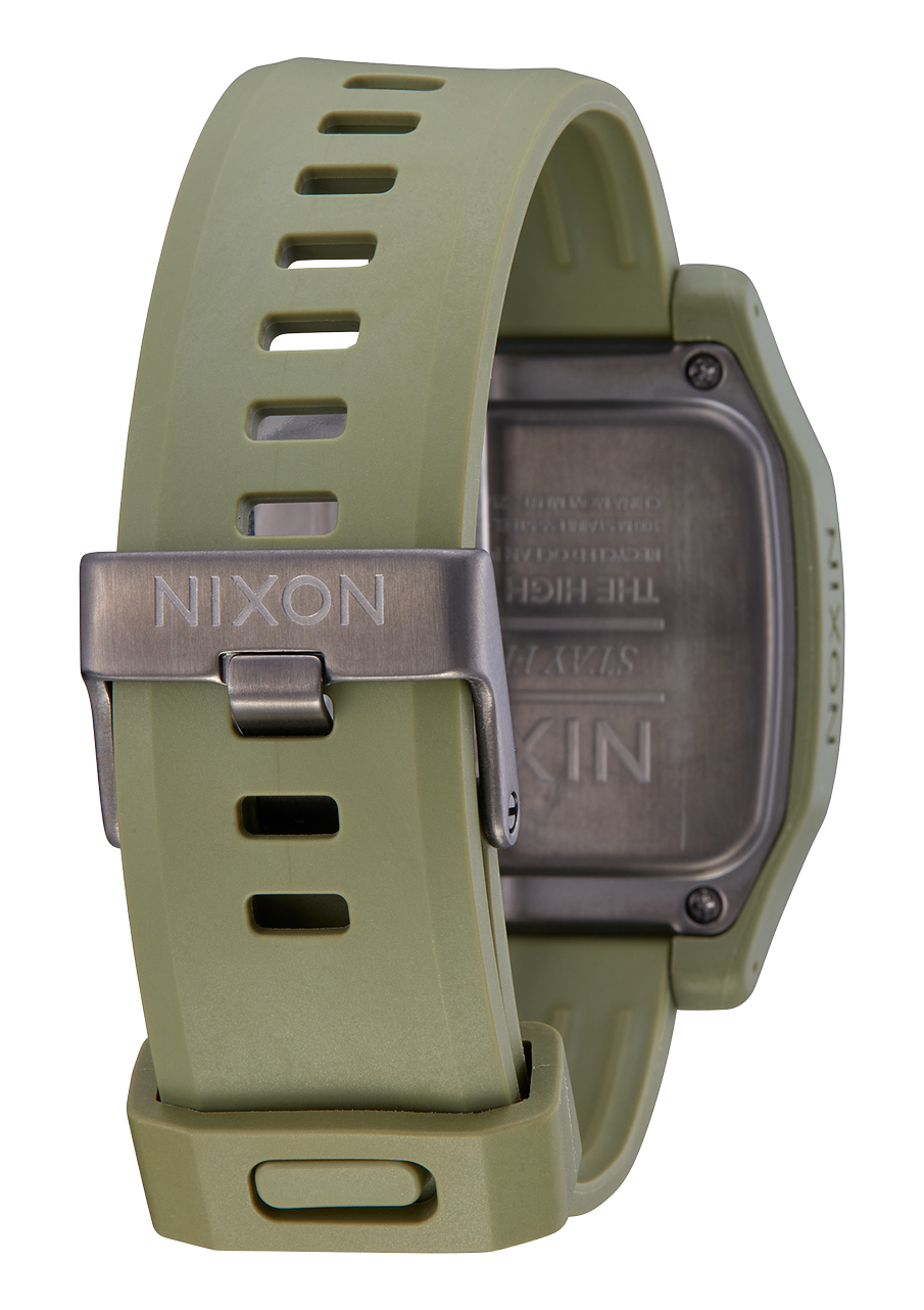 Custom digital module with high-resolution MLCD with front light, 550 pre-programmed beach locations with precise tide, sun, and moon data, chronograph with action time stamp and countdown timer.