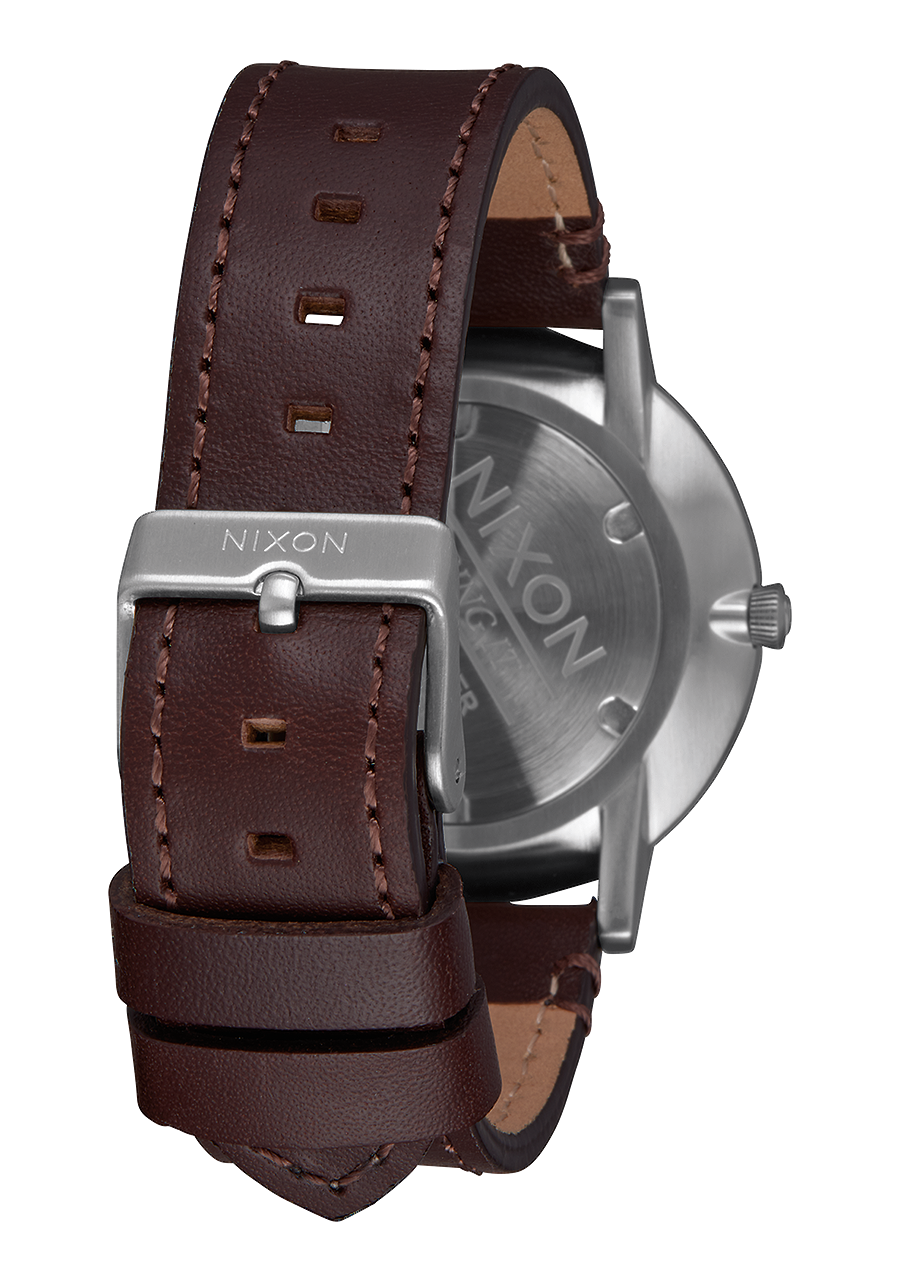 40mm custom stainless steel case with a 50 meter / 5 ATM water rating. Comes with a hardened mineral crystal, double gasket crown, stainless steel screw down caseback and spring pin lugs.
