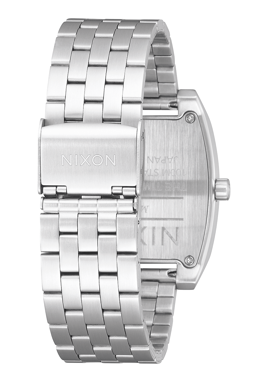 37mm, 100 meter/10 ATM, custom square shaped stainless steel case, hardened mineral crystal, stainless steel screw down caseback, and spring pin lugs.